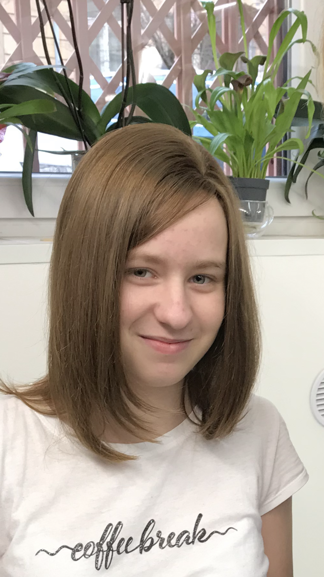 S Bětuškou jsme se nakonec domluvili, že jí radost udělá celá paruka, se světle oříškovým odstínem a ofinkou, tak jak byla dříve zvyklá nosit. Nakonec se rozpovídala i o svých koníčcích, ze kterých už ji moc nebaví tancování, protože je spíš pro malé děti. Zato kroužek grafiky, kde na počítači vznikají krásné obrázky, je u jedenáctileté Bětky hodně oblíbený V poslední době ale vedou koně, se kterými pomáhá hlavně během návštěv u tatínka ve stájích. A dokonce se už i dvakrát mohla svézt. A protože nejkrásnější pohled je z koňského hřbetu, my k tomu Bětušce přidáme i krásnou plavou hřívu, vlastně paruku. Až se s koníkem pustí do cvalu, nebude mu vůbec už tu jeho hřívu závidět, její vlásky už budou moct také pěkně vlát. A těšíme se, až se nám o všech svých zážitcích, ve své nové image, rozpovídá, s krásným usměvem navíc.